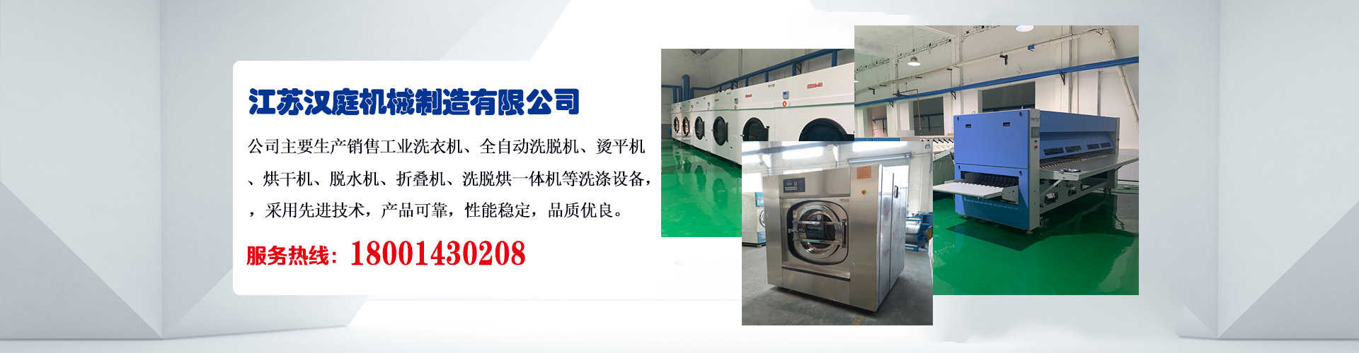 江蘇漢庭機(jī)械制造有限公司 位于長(zhǎng)江三角洲地區(qū),是生產(chǎn)制造服裝洗滌機(jī)械,賓館、酒店等洗衣房設(shè)備的專(zhuān)業(yè)廠家。 江蘇漢庭機(jī)械制造有限公司從建廠至今已走過(guò)數(shù)個(gè)年頭,從剛開(kāi)始的洗滌設(shè)備行業(yè)新秀企業(yè)一躍成為江蘇省泰州市會(huì)員企業(yè),公司現(xiàn)有員工234名,其中工程技術(shù)人員68名,各種加工設(shè)備131臺(tái),具備車(chē)、銑、刨、磨、鈑金、焊接、機(jī)械和電器裝配等完善的加工條件,不僅能使各種設(shè)計(jì)成果迅速轉(zhuǎn)化為質(zhì)量?jī)?yōu)秀的產(chǎn)品,而且能夠有效的保證產(chǎn)品......